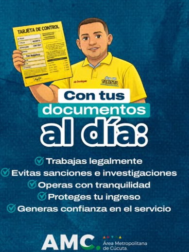 El Área Metropolitana de Cúcuta hace un llamado a los conductores del servicio público para mantener sus documentos en regla y al día, como parte del compromiso con la legalidad y la calidad del servicio.
